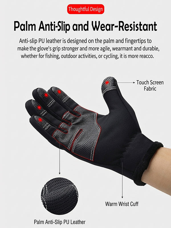 The palm and fingertips are reinforced with wear-resistant, non-slip PU leather, improving grip strength by 150%. Engineered specifically for secure handling of ski poles and bicycle handlebars, providing confident control and sensitive touch even in wet, cold conditions.